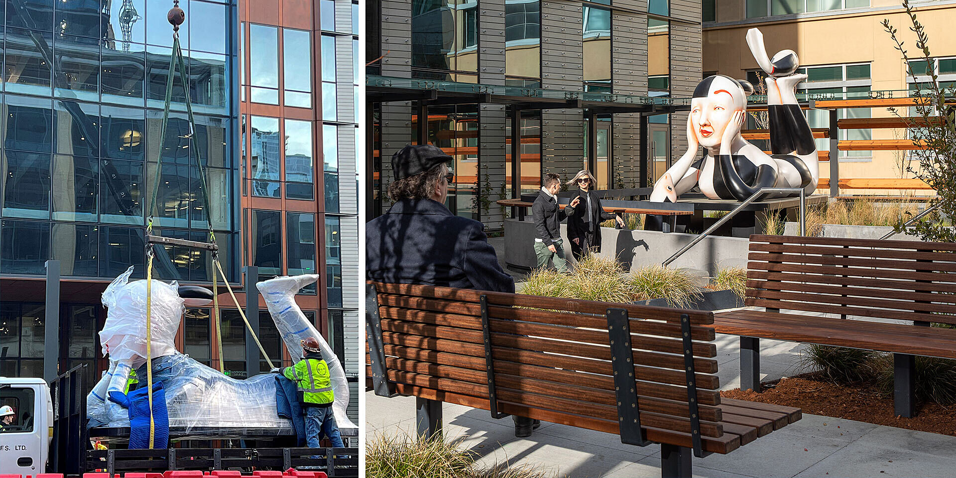Ready to move into her new home earlier than needed, Dreamer sat patiently in storage for six weeks. Pushing installation to the latest possible date reduced the risk of damage to the prized artwork. Dreamer made her grand entrance one month before Temporary Certificate of Occupancy [TCO].
