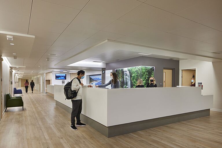 Liz sums up the result: “What looks like another beautiful space becomes truly extraordinary when you take a closer look and realize all of the attention to detail that went into making this unique environment operate with safety, durability, infection prevention, human dignity, and healing aesthetics in mind. It’s a testament to the power of collaborative teamwork to dream up, design, and execute new approaches for specialized treatment facilities.”