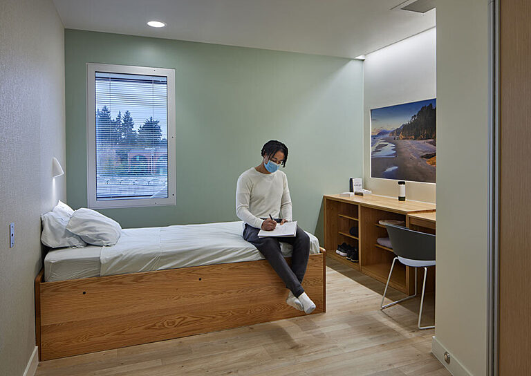 The BHU replaces a smaller, outdated facility at the medical center. Overlake asked the team to set a new standard of design for behavioral health facilities, one that supports the unique needs of both staff and patients—much different from typical healthcare space—and communicates to each individual who walks through the door: