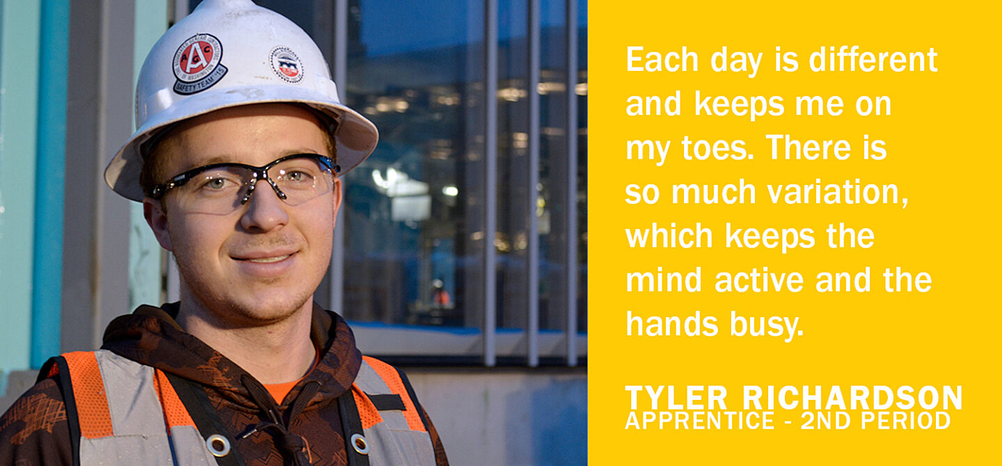 Naturally, Tyler applied for the apprenticeship program as soon as he was old enough. Though he knew what to expect, he says he was surprised by the high level of unity on the jobsite. If he struggles, someone steps in to help. As an added bonus, he already made many friends who he can depend on outside of work as well.