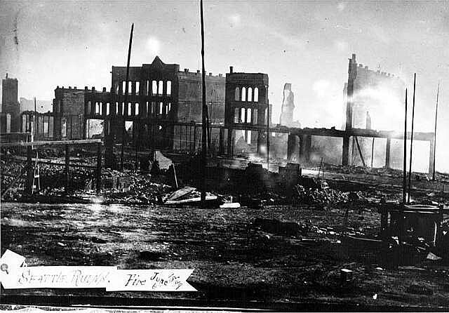 Pioneer Square after Seattle’s Great Fire, June 6, 1889. Public Domain Media: Seattle Photographs Collection.