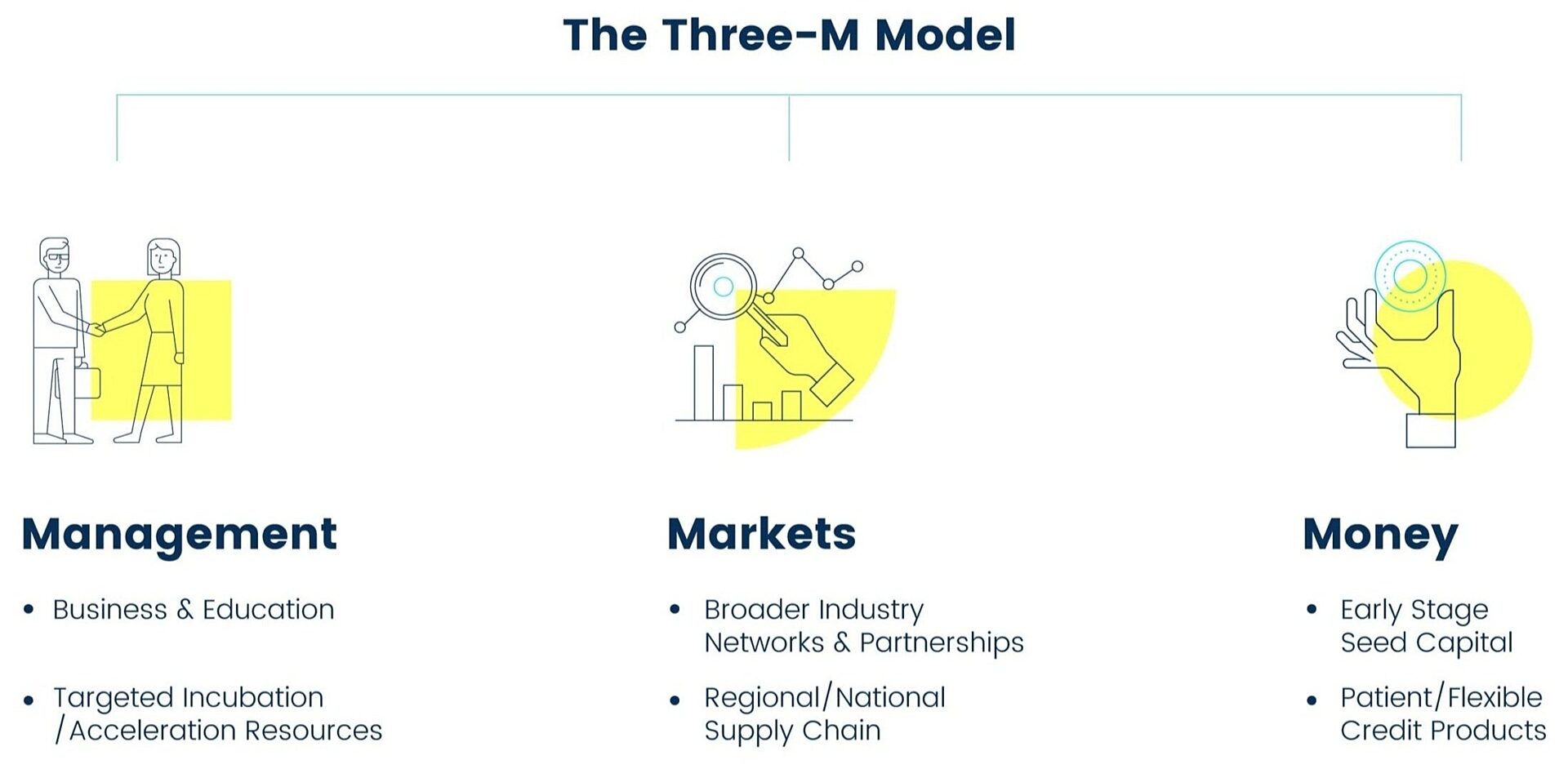 The Three-M model, pioneered by UW's Foster School of Business, generates a support ecosystem for helping entrepreneurs accelerate business growth through improved access to Management, Markets, and Money.