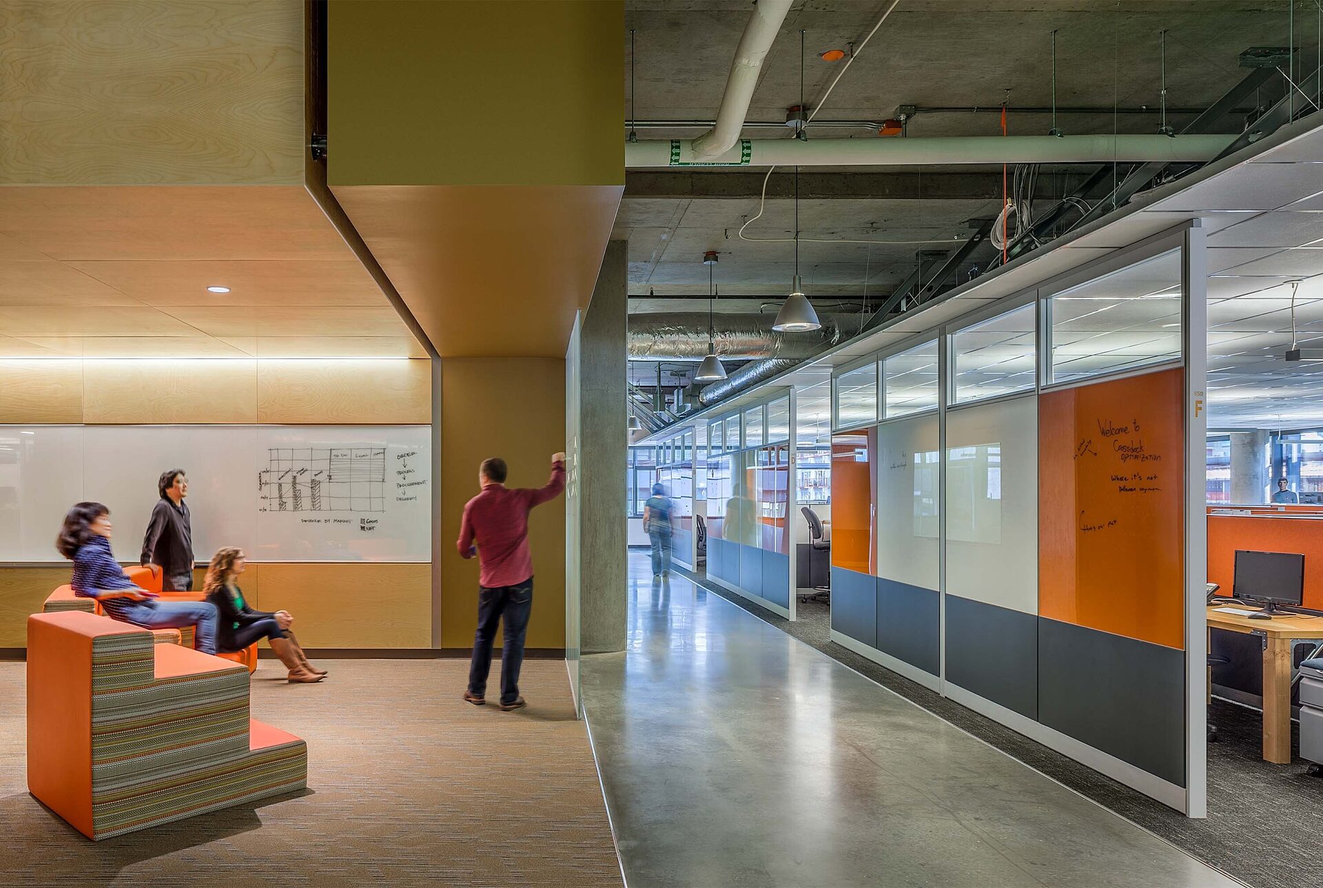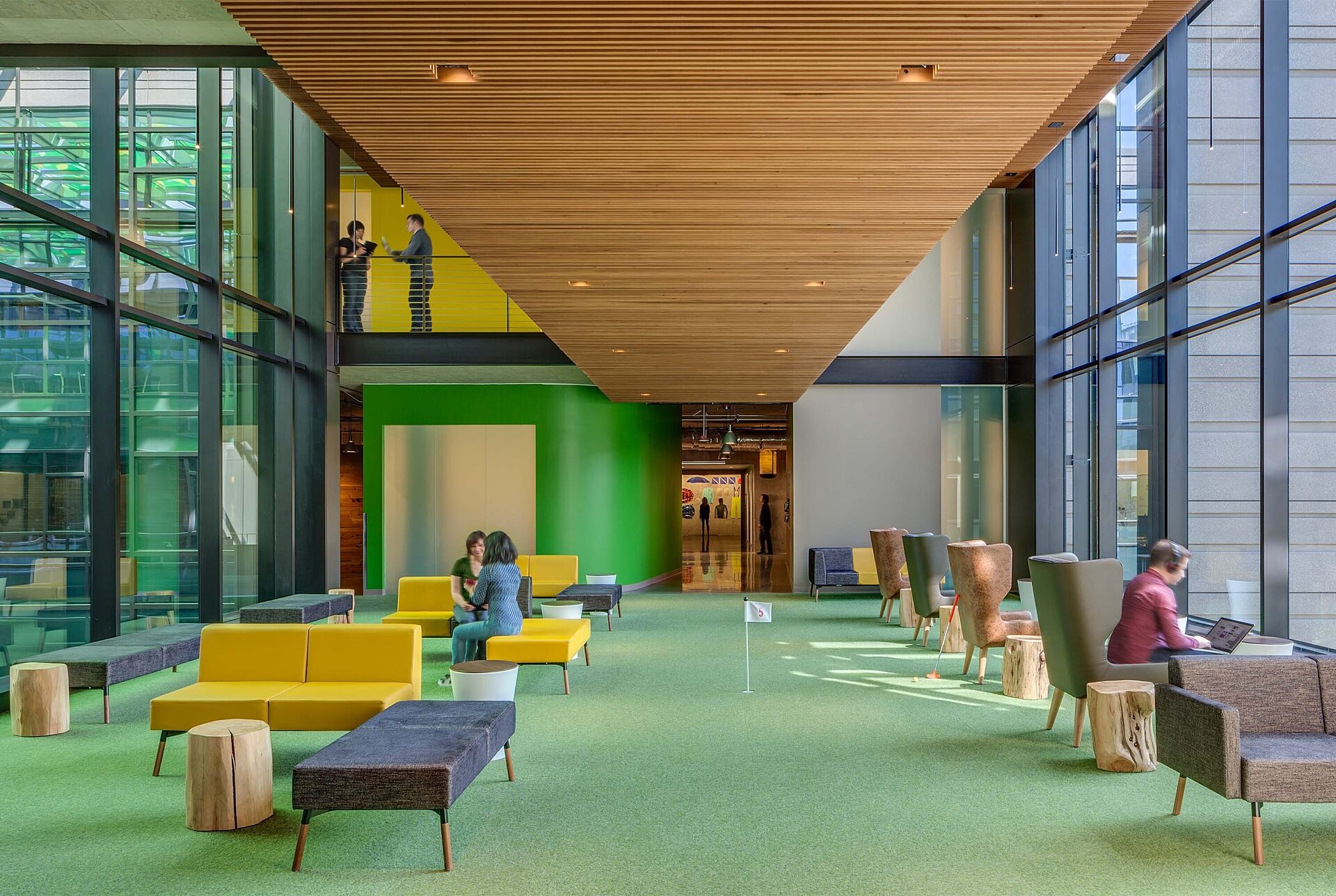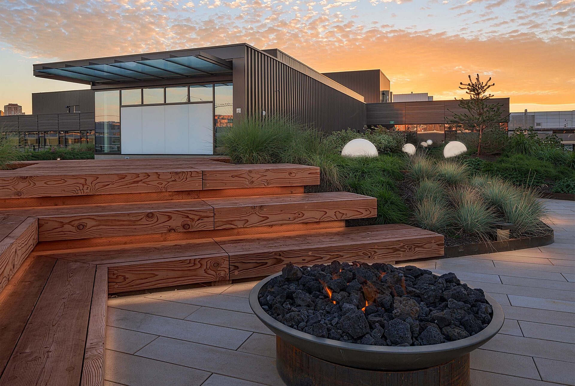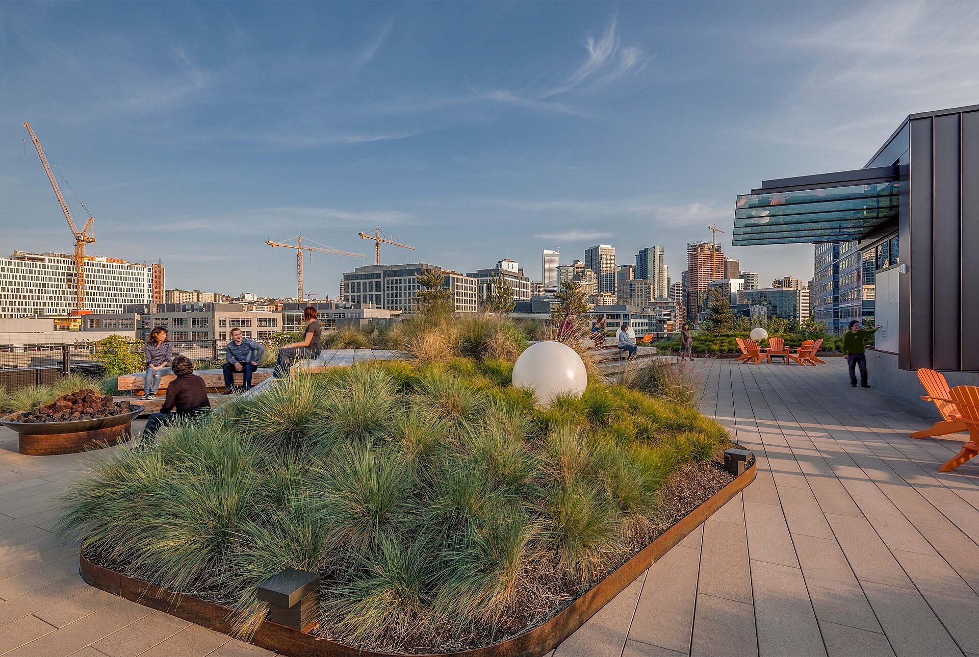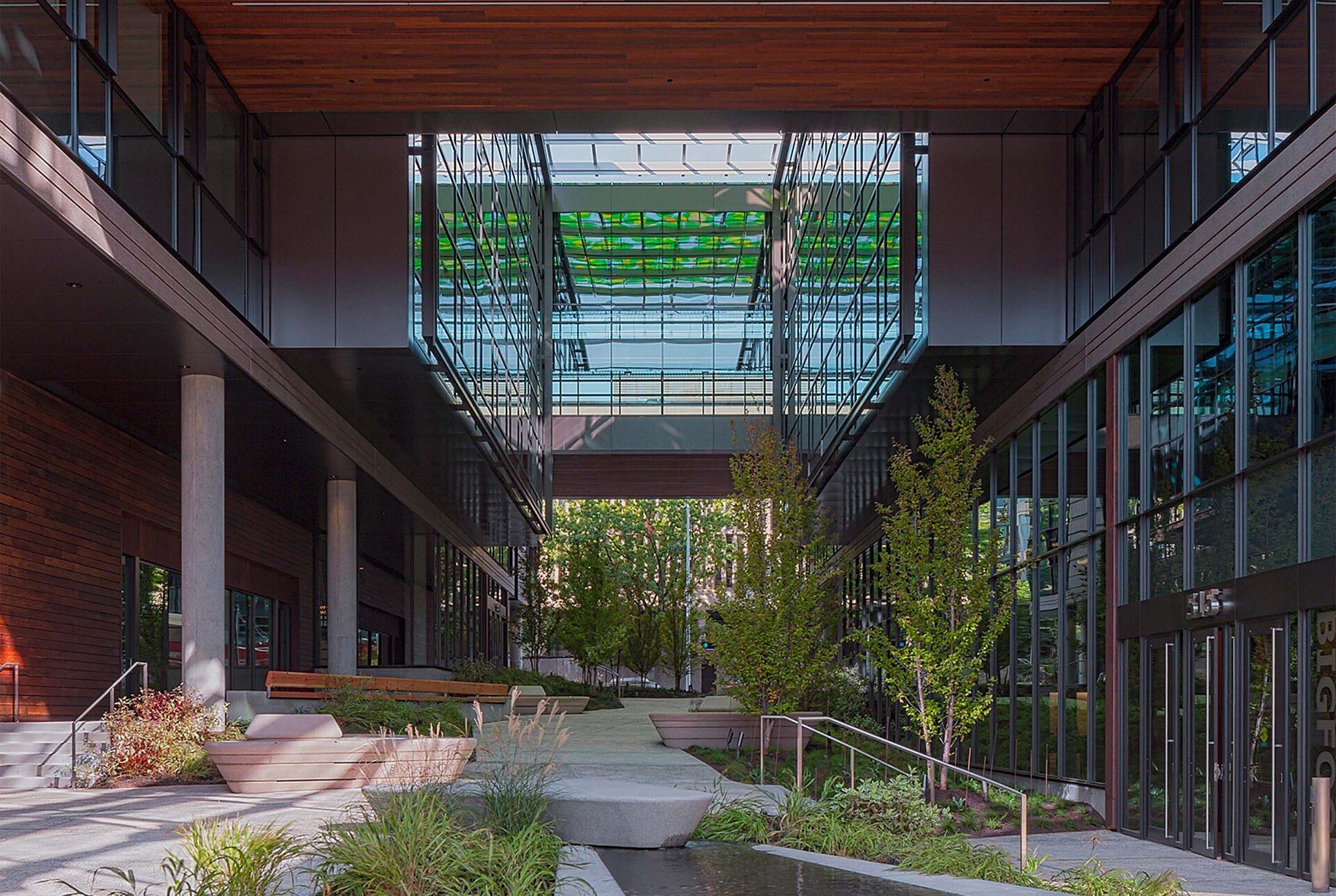 Part of Vulcan’s largest and most active project – the redevelopment of the South Lake Union neighborhood – Block 44 adds a five- and six-story office building, totaling 380,700 square feet, to Amazon’s ongoing global headquarters expansion. The two buildings are connected by a glass canopy featuring a Spencer Finch art installation, which covers a public crossblock with water features, outdoor seating and landscaping. Phase VI also features 18,000 square feet of ground-level retail space.