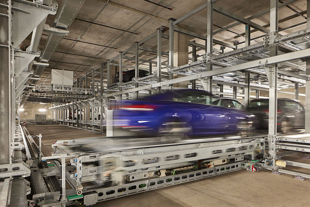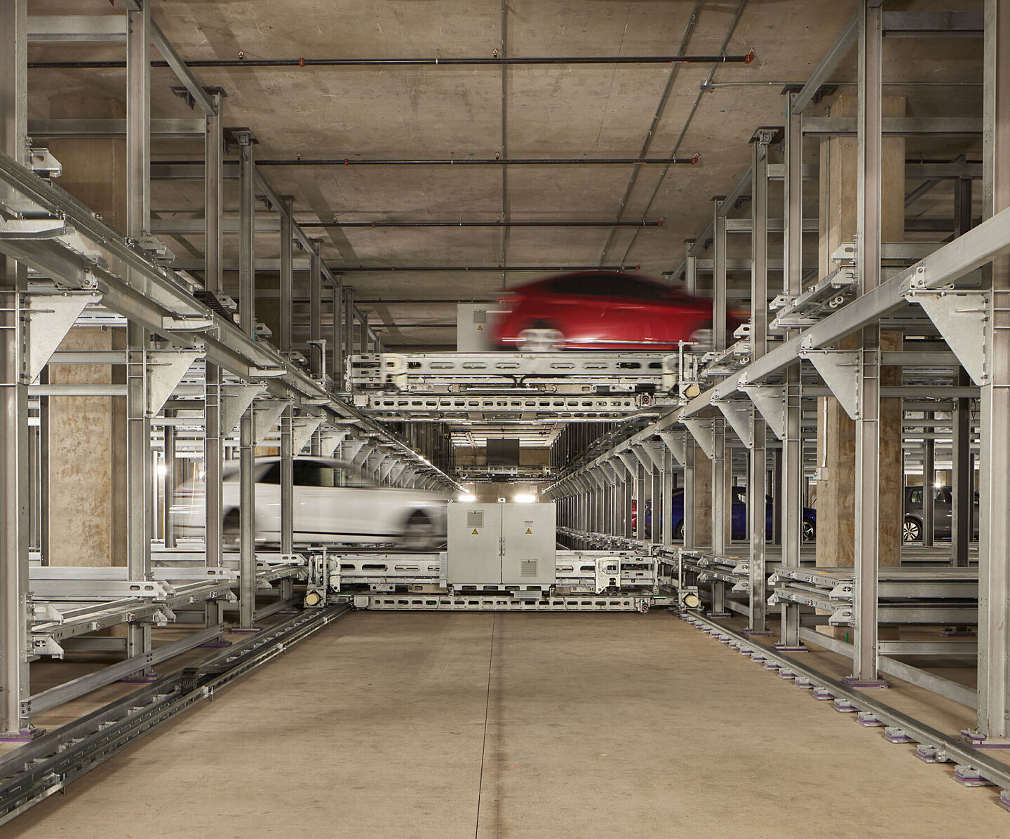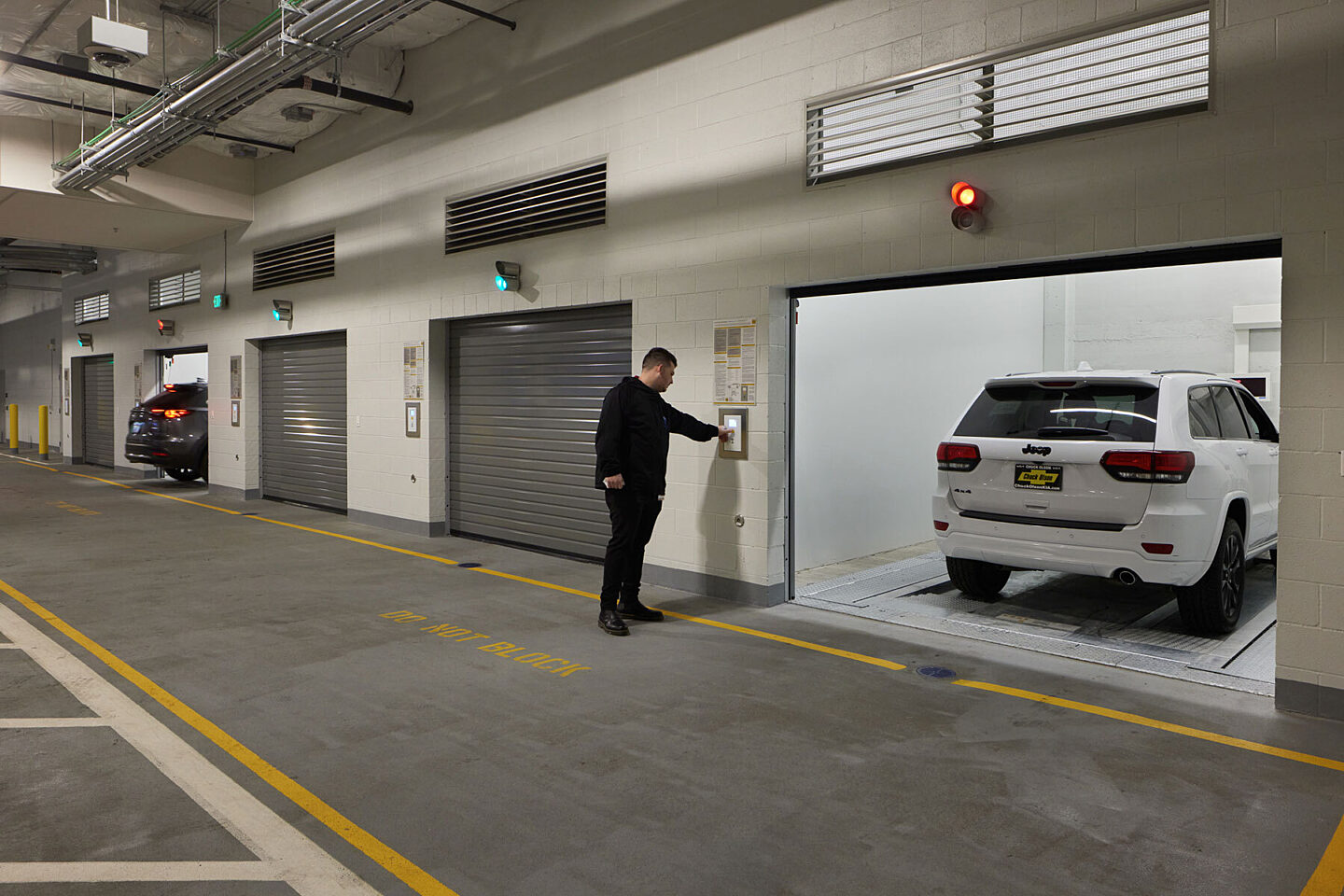 The garage footprint is long, narrow, and tall. GLY proposed the idea of using an automated parking system [APS] to make efficient use of the compact space, reduce the overall size of excavation, and provide a better patient parking experience. This APS is the first of its kind for any medical center in the Puget Sound region, and the first of its size on the West Coast.