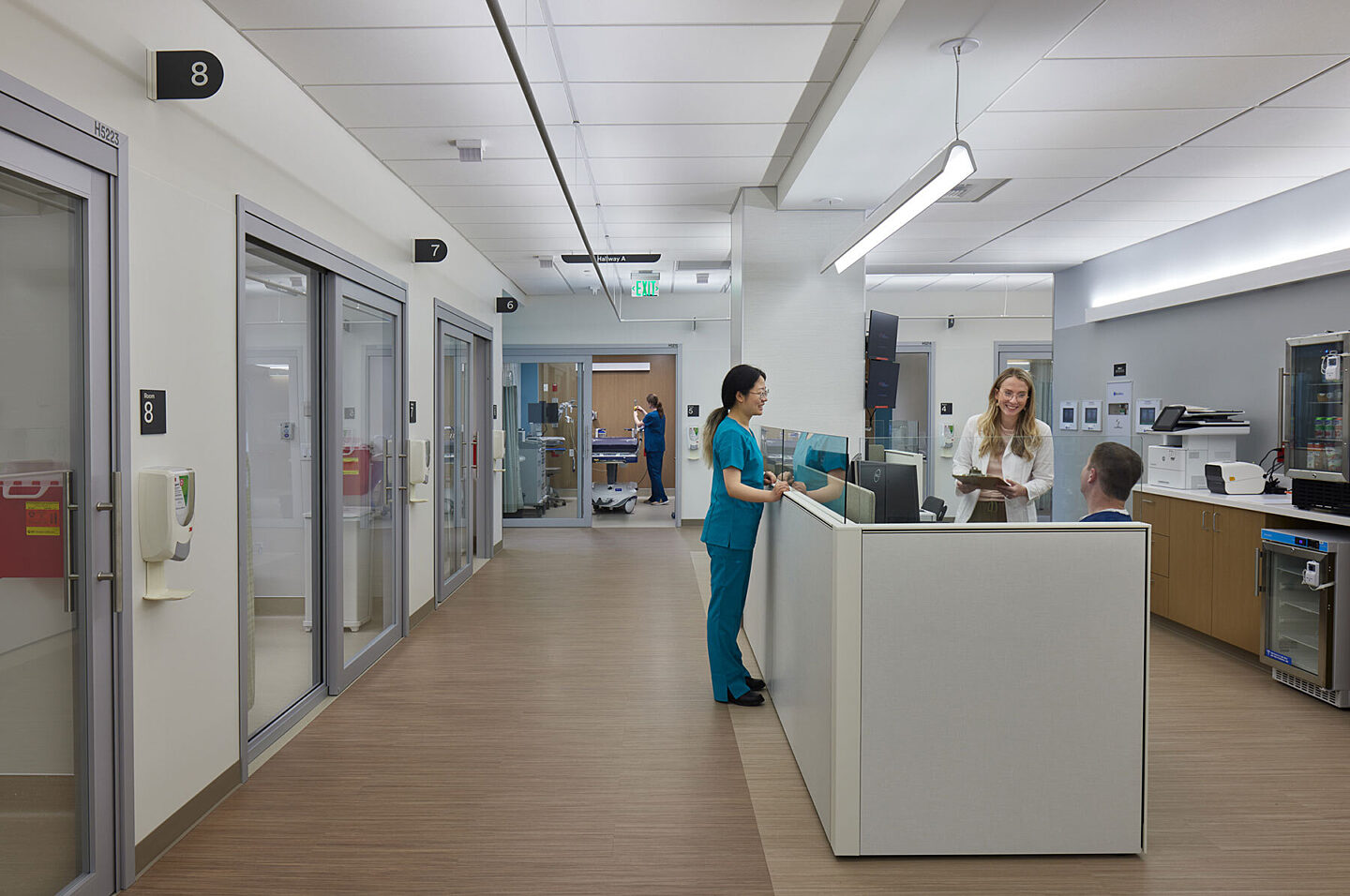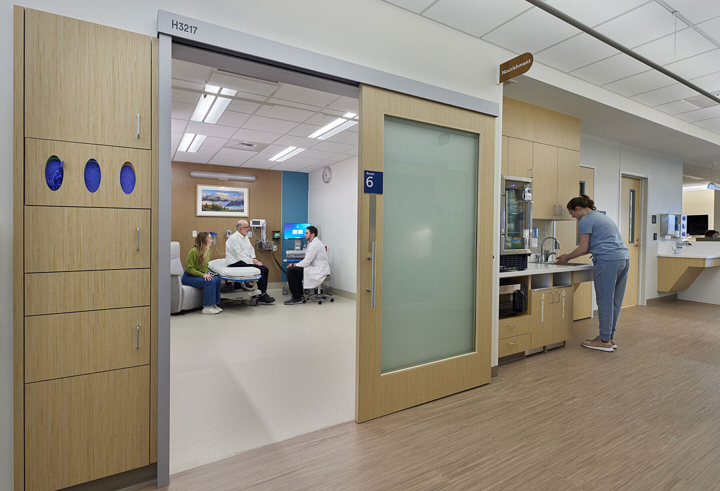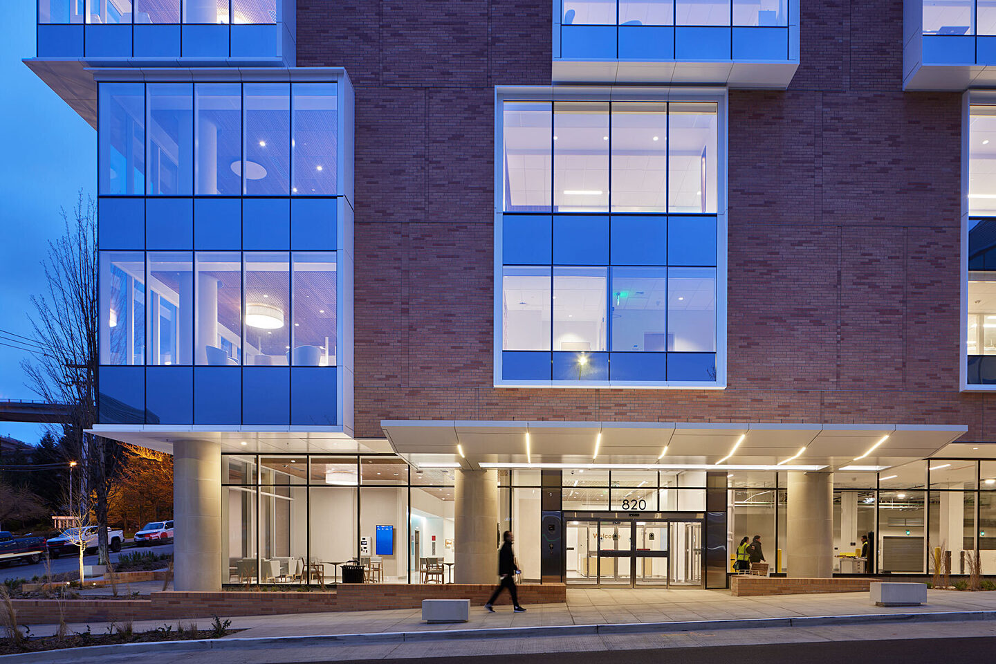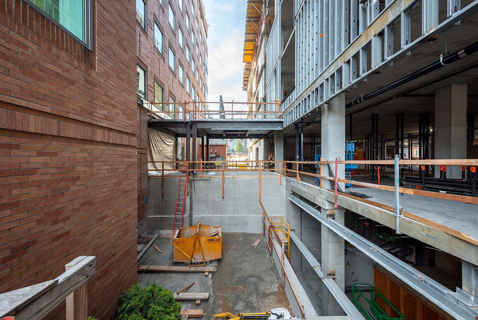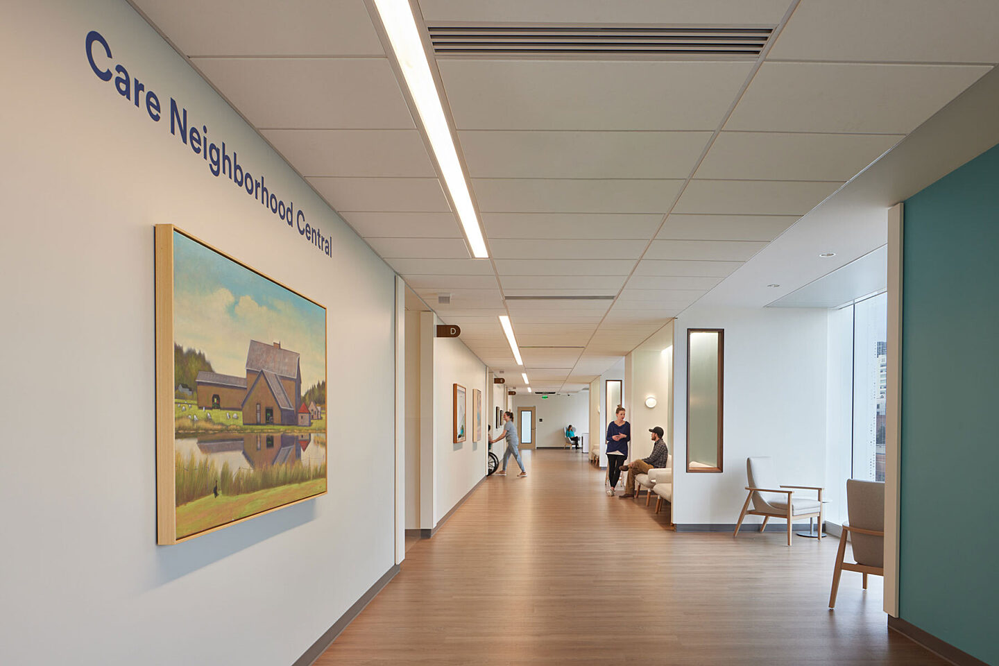 GLY and ZGF successfully managed to help the client avoid a costly substantial alteration. The design started as a full tie-in to the existing building—connecting at two locations on each of seven floors. This required replacing incoming radial power with network power, connecting the fire sprinkler systems, and connecting below-grade parking garages. This triggered a substantial alteration through City of Seattle, resulting in extensive upgrades to meet current codes. After negotiation attempts with the City, GLY budgeted various scenarios and revisions to the existing clinic to find a balance of code upgrades, programming, and aesthetics that met the project goals.