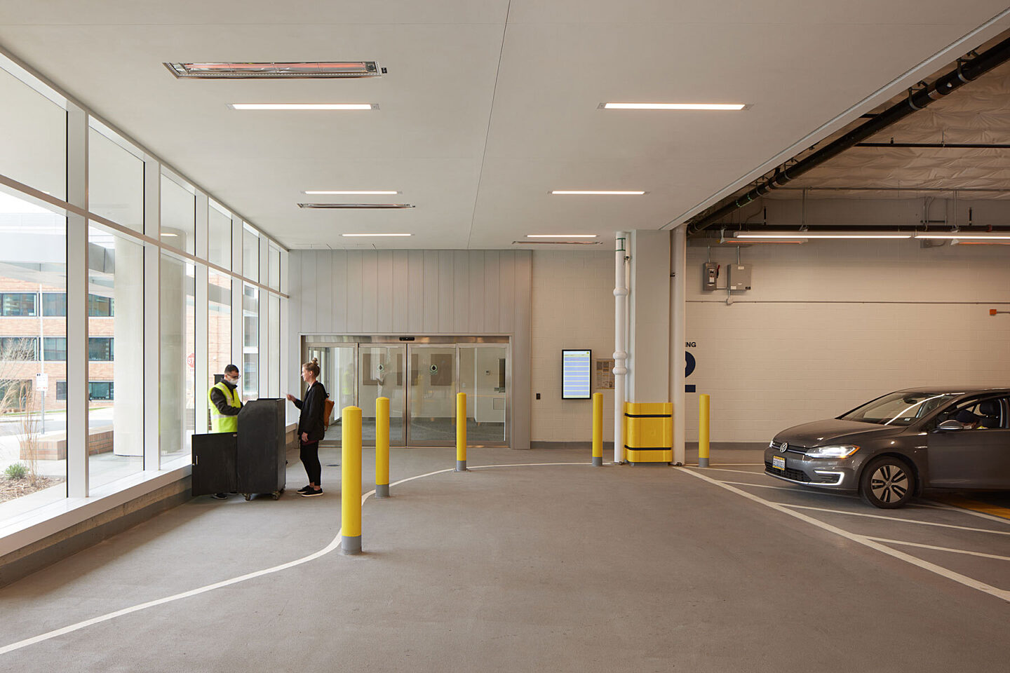 Clinic Building 2 connects to the existing Clinic Building 1 on Level 1, providing easy access between the two. A fully automated parking garage, the first of its kind for any medical center in the region, gives patients a consistent and worry-free parking experience, and eliminates the need in this building for a separate passenger elevator system.