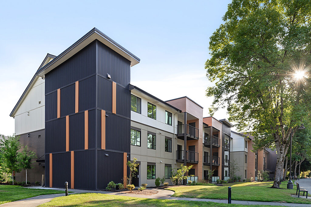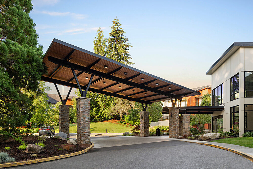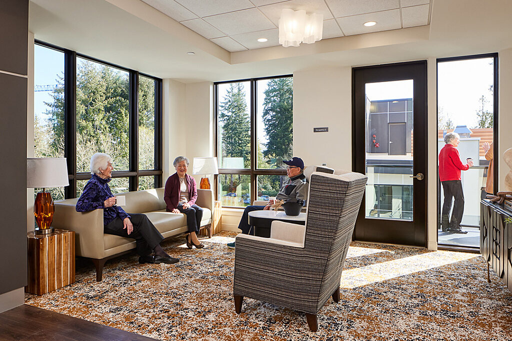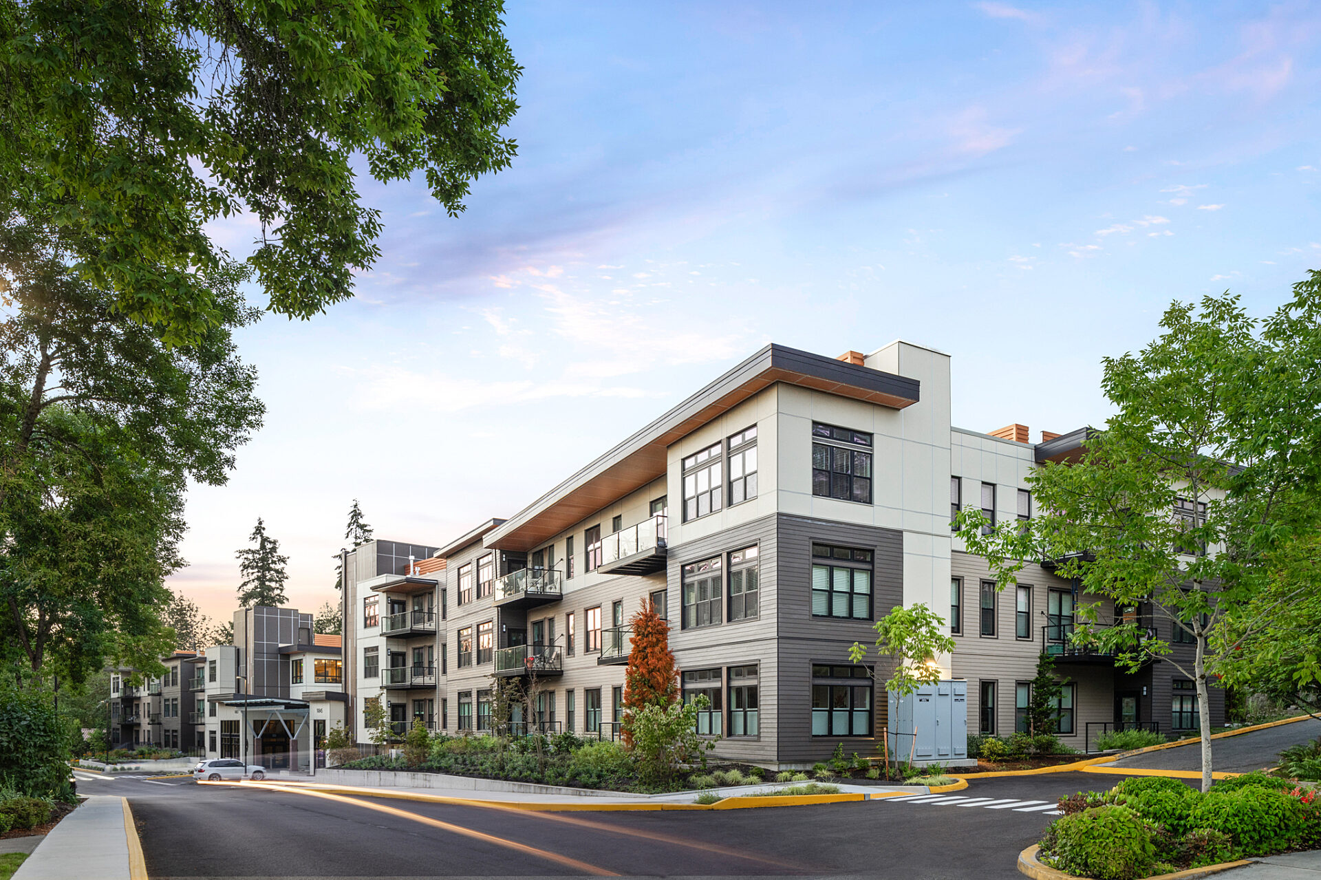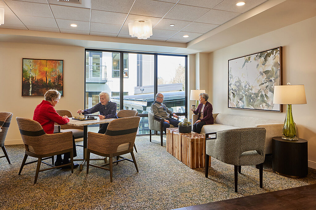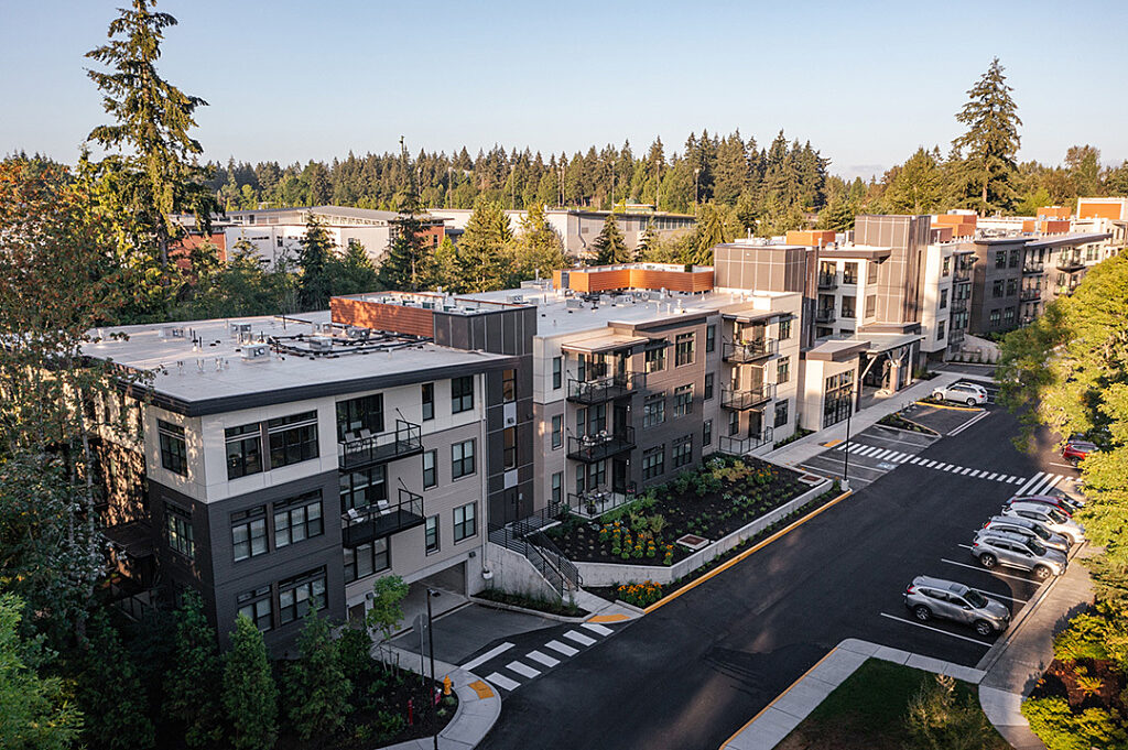 In response to increased demand for senior independent living units, Emerald Heights enhanced its campus offerings with a new environmentally responsible apartment complex. Comprised of two three-story wood-framed buildings atop an underground parking garage, The Courtyard features 42 one- and two-bedroom apartments, six new floor plans, and a central courtyard complete with a water feature and firepit. Each unit includes a full kitchen, washer/dryer, and quality finishes.