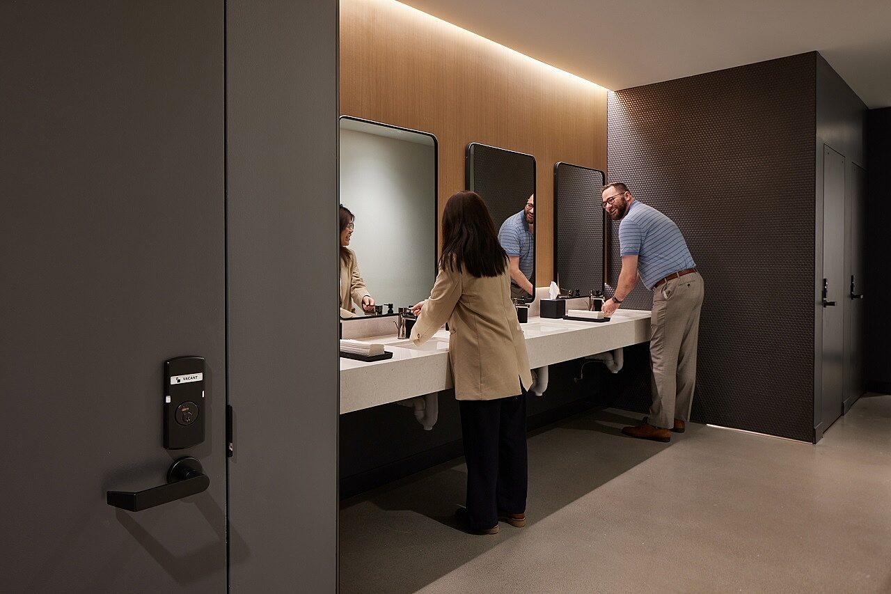 Gender neutral and individual restrooms encompass the different levels of needs of GGLO's staff and guests.