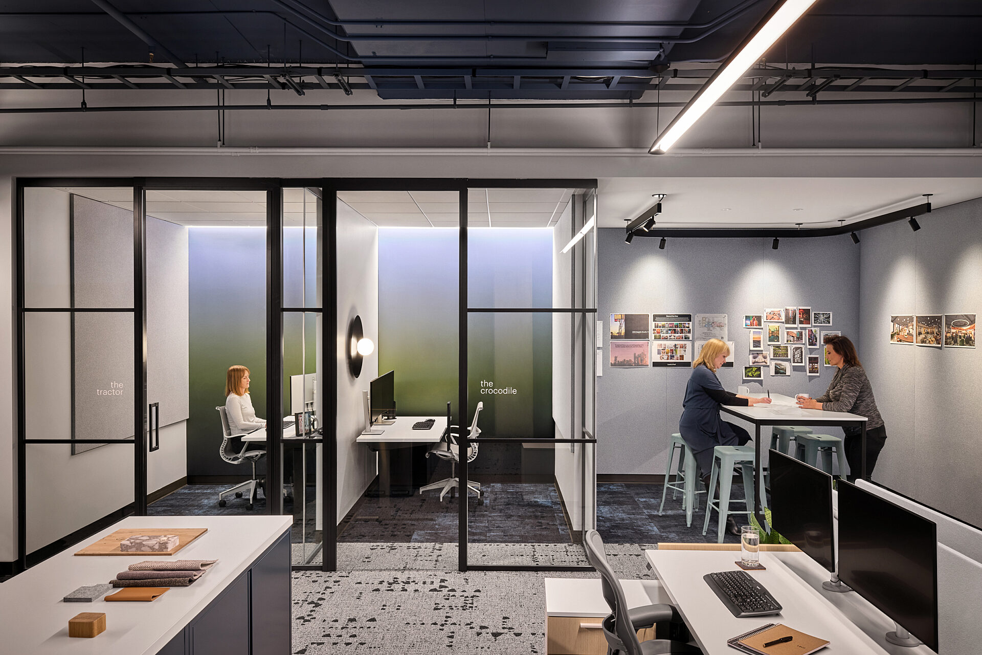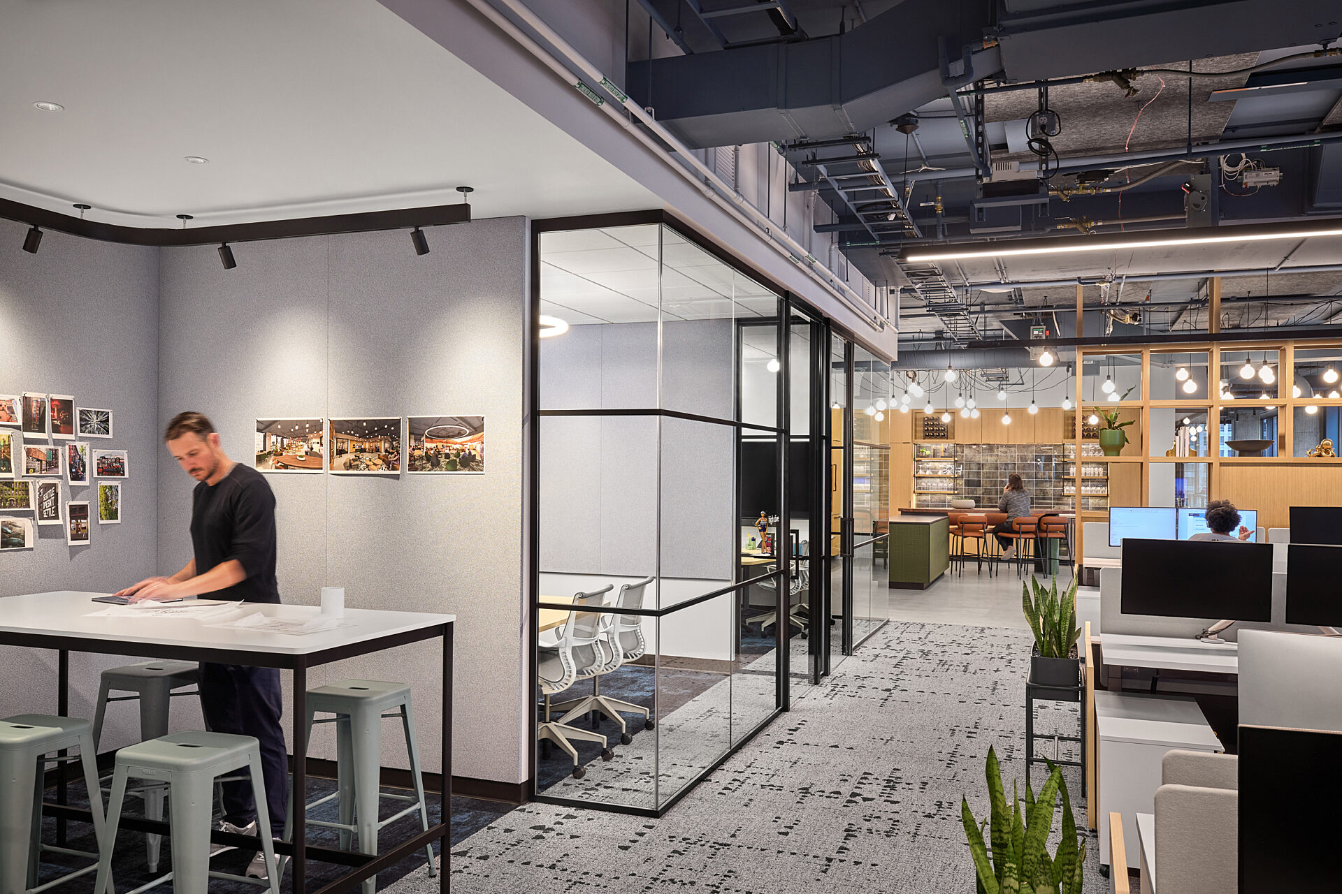 Construction took place in an active, occupied building, requiring close coordination and thoughtful planning. Beyond the office itself, GLY also completed the surrounding common areas—including the elevator lobby, all-gender restroom, and tenant corridor—on behalf of Wright Runstad.