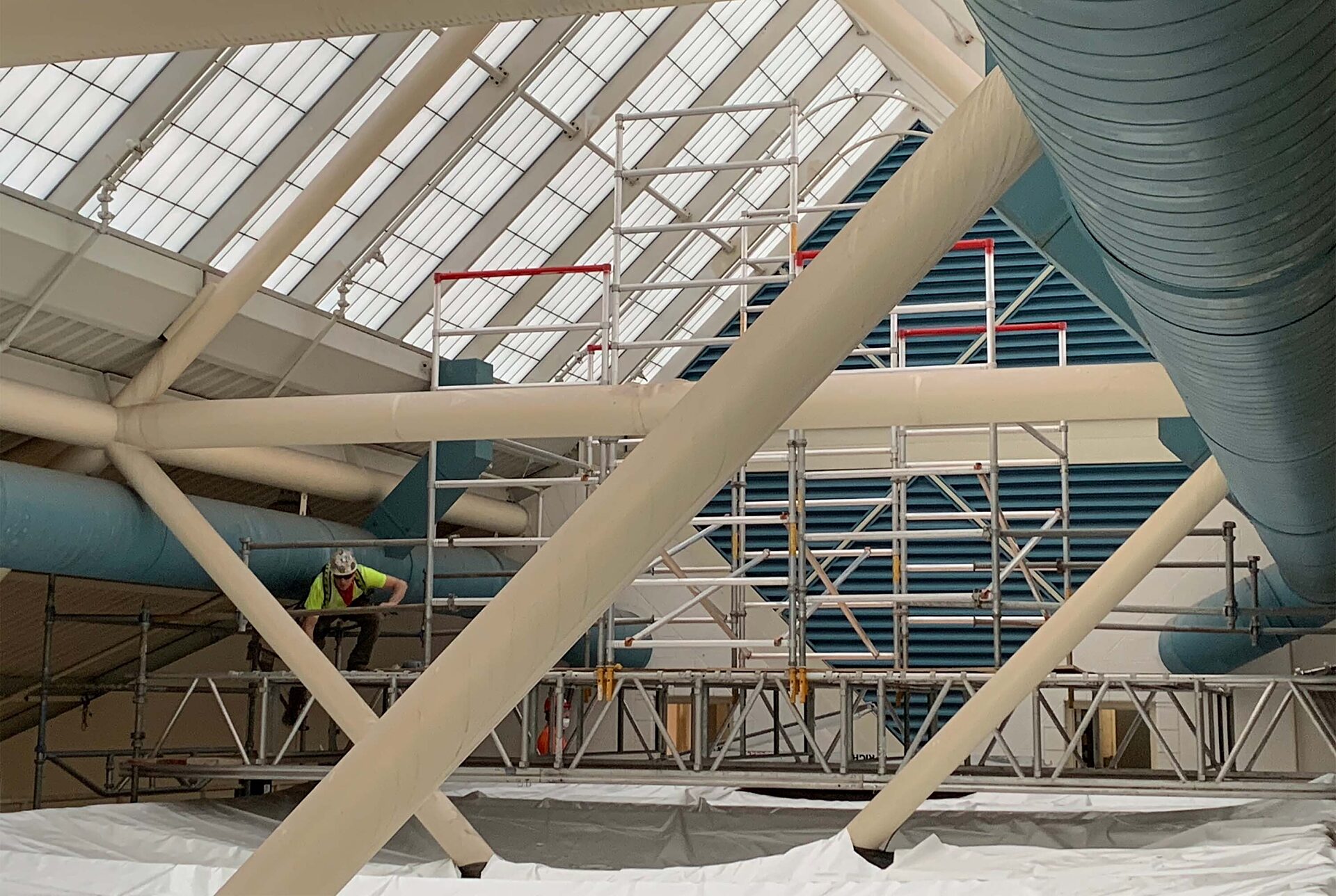 King County Aquatic Center was originally constructed for the 1990 Goodwill Games and needed structural repairs to existing skylight systems. GLY installed an engineered scaffolding system over the existing catwalk to access the skylight systems’ metal supports for repairs. In addition to replacing rusted and damaged steel bolts with the help of union iron workers, GLY partnered with NI Painting, an MBE firm, to coordinate a specialized Tnemec paint coating system for the finishing of the project’s surface.