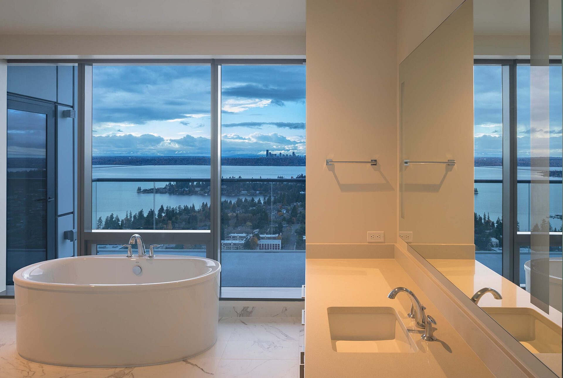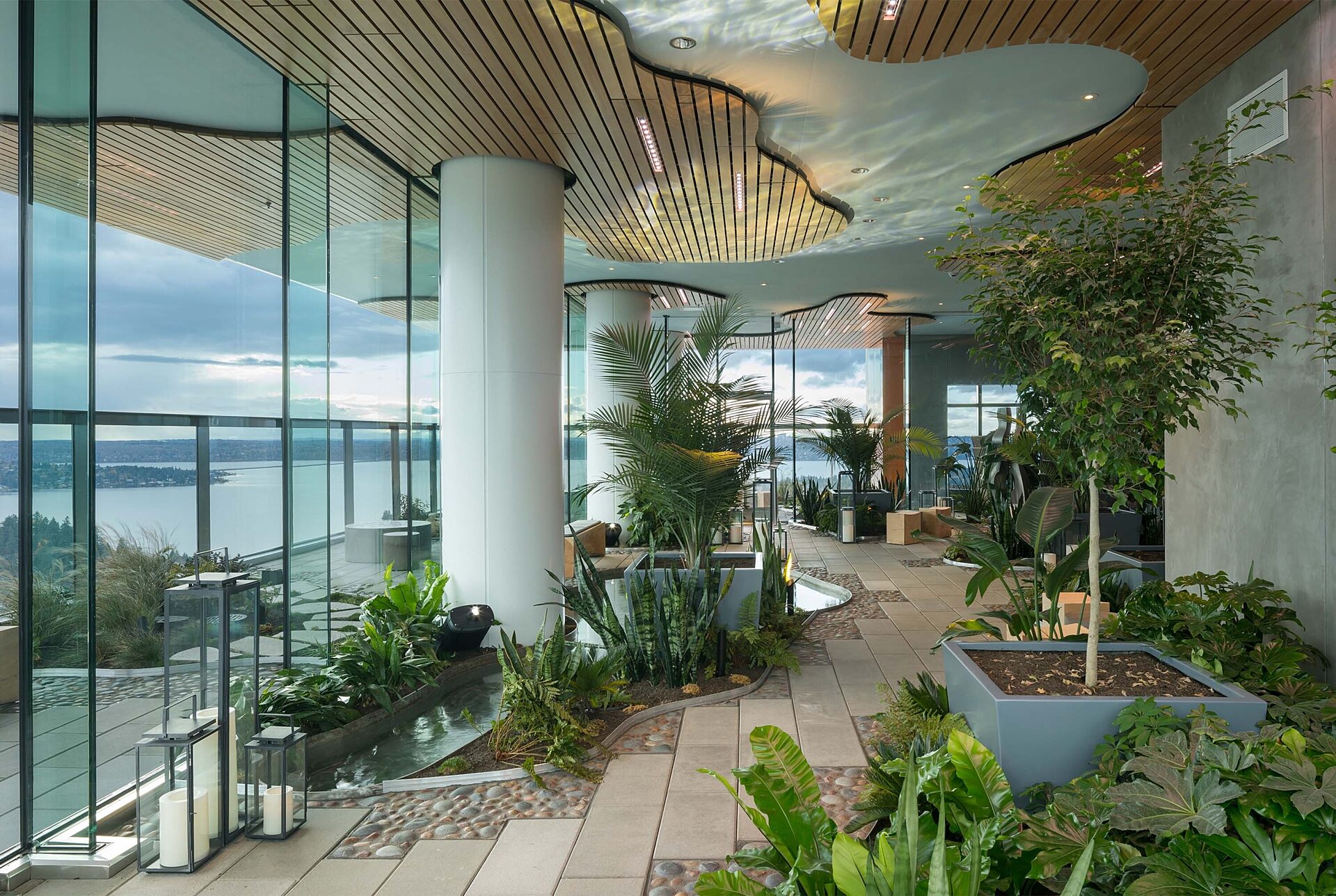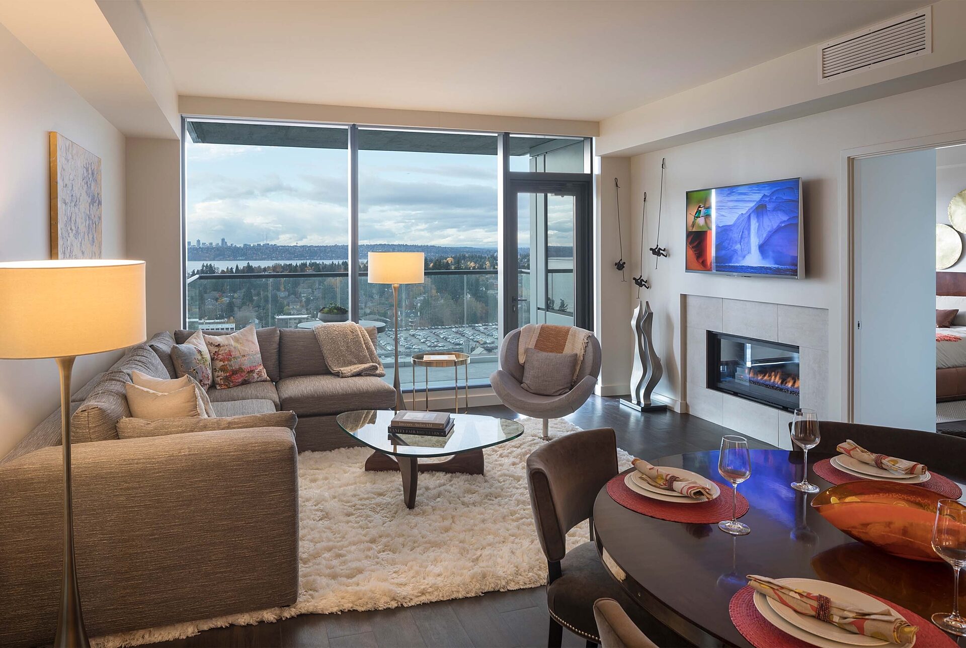 Occupying the upper 28 levels of the Lincoln Square Expansion 41-story north tower, 218 luxury apartment units range in size with 1-, 2- and 3-bedroom options averaging 1,650 square feet. Each unit features high-end finishes including Bosch, Wolf, and Sub-Zero appliances, solid core doors, exterior balconies, and Montigo fireplaces. Residents have access to three amenity areas including a lounge/media room on Level 2, an outdoor BBQ/lounge on Level 14 and an indoor/outdoor oasis-like rooftop space on Level 41. The exterior façade is a combination of curtain and window walls, providing ample daylight and views.