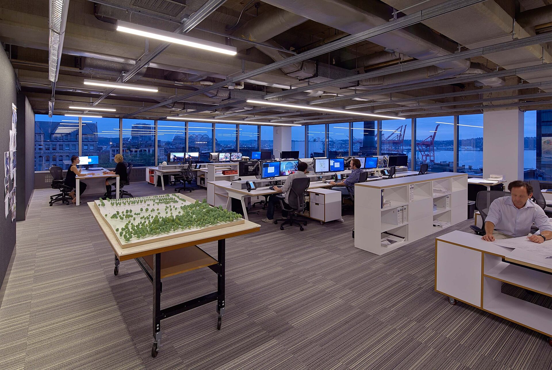 What started as a 26,000 square foot office renovation progressed into a series of tenant improvements over the next eight years. LMN Architects, widely recognized for their distinctive, integrated design solutions and collaborative work style, initially reinvented their office in downtown Seattle’s historic Norton Building – working with GLY to design and build a space that reflects their enthusiastic and collaborative culture of “making.”
