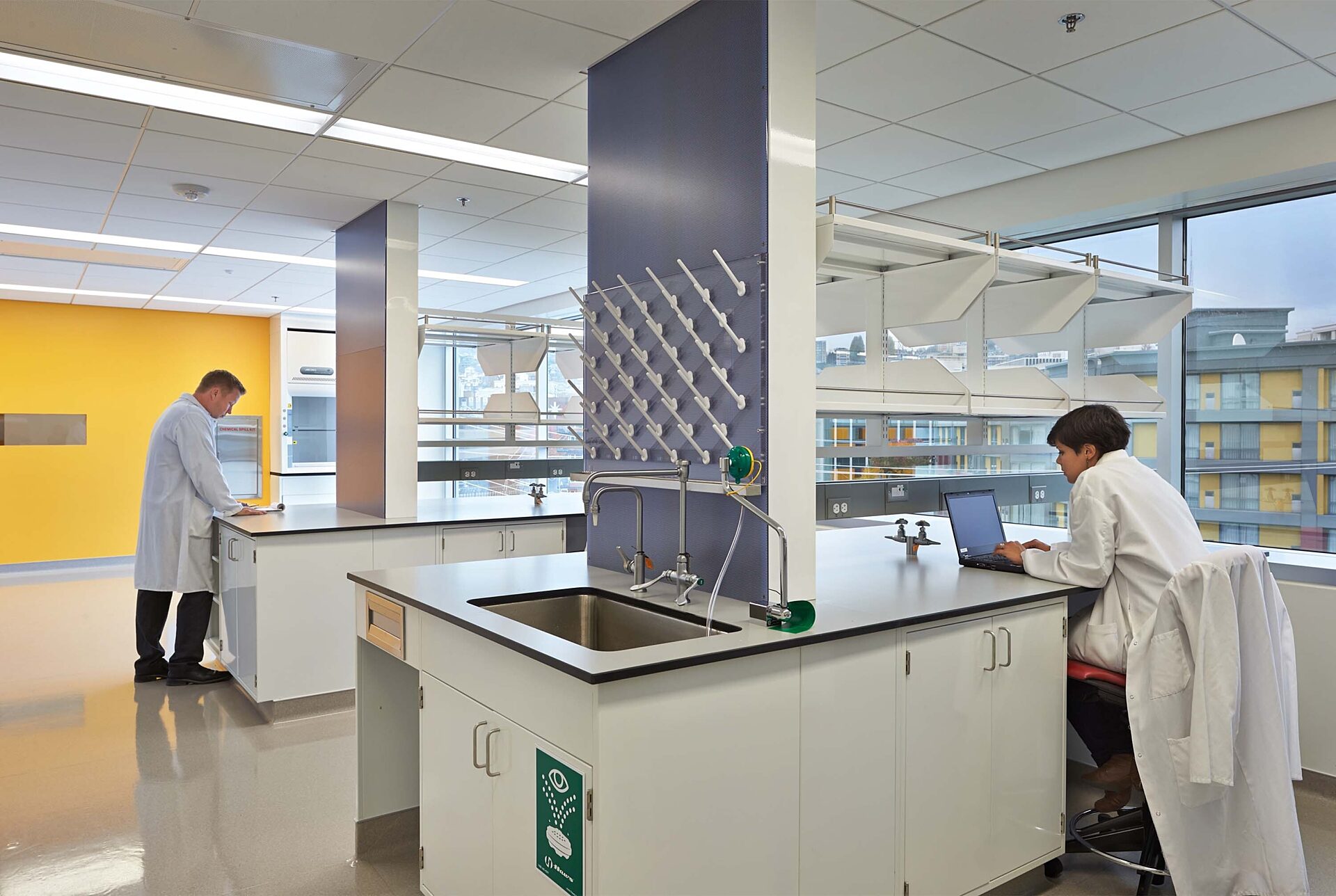 The completed 64,500 square foot tenant improvement includes the build-out of floors 1, 3, 4 and 5. Level 1 includes lab space; Level 3 is combination of offices, conference rooms, copy centers, reception and HD storage; and Levels 4 and 5 consist of lab and office space. A new HVAC system features two new RTUs.