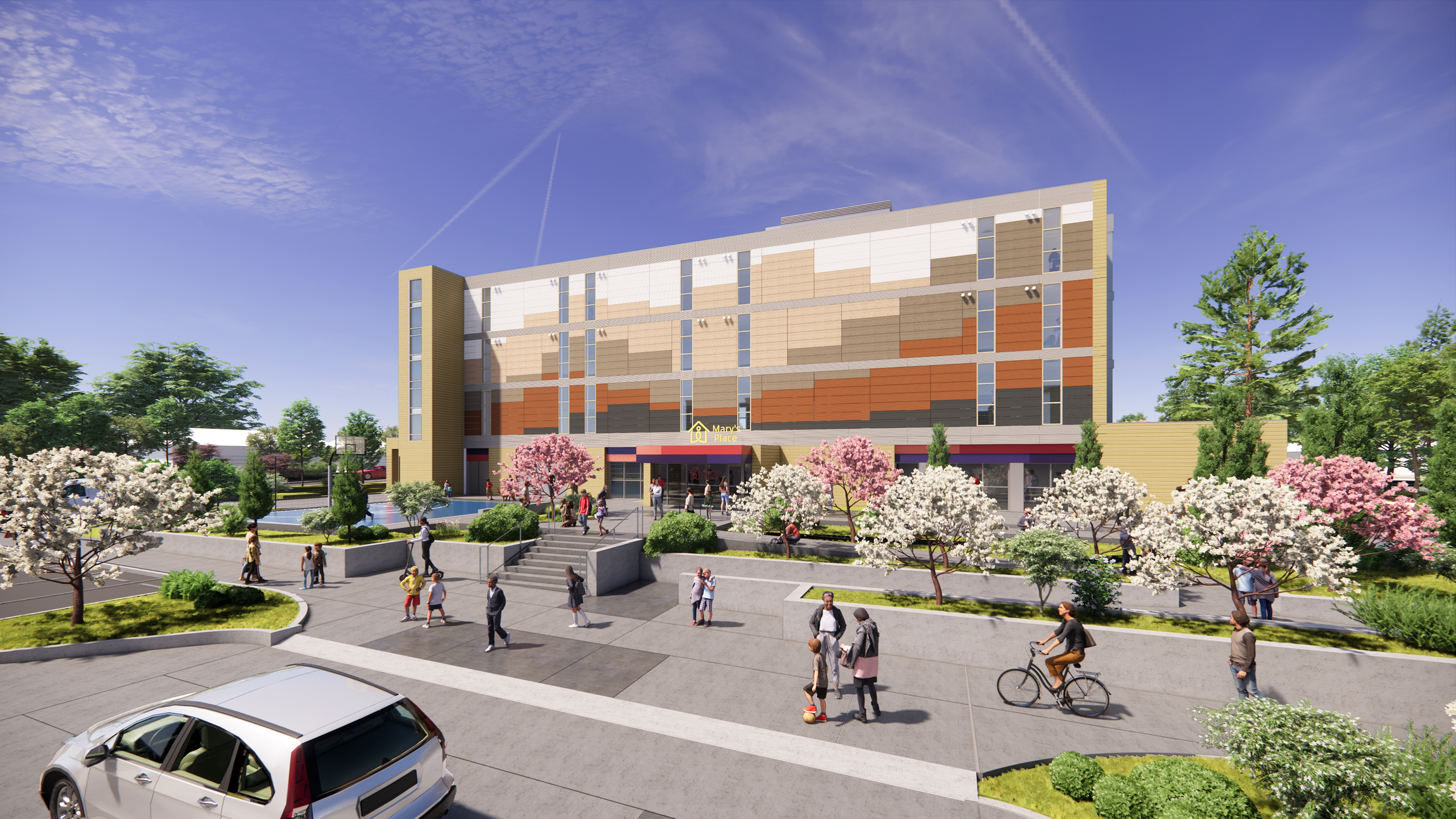 The two-story, 17,300 square foot community center includes a chapel fellowship hall, kitchen and dining space, offices, gym, classrooms, and other amenities. The additional space allows the organization to expand social service and after-school programs. The larger kitchen and dining space helps them serve a home-cooked meal to approximately 50 individuals every night.