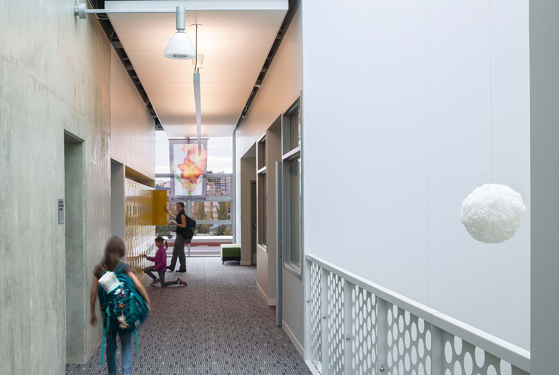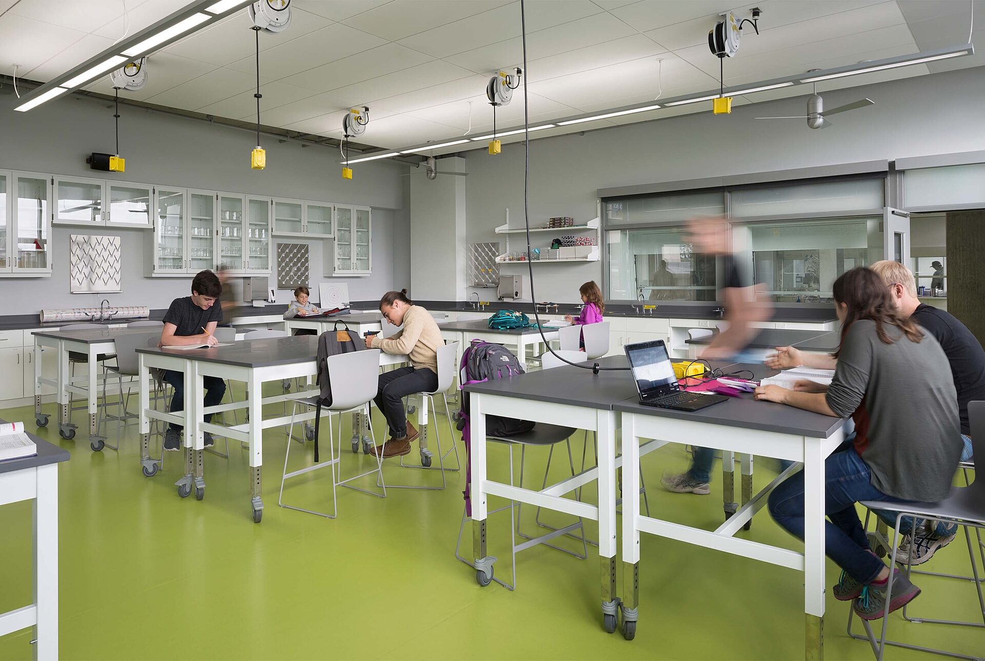 The five-story, 34,000 square foot Science + Engineering [STREAM] Building is the newest addition to the Seattle Academy of Arts + Sciences campus. Located at the corner of 13th and East Spring on Capitol Hill, the STREAM building consists of seven laboratory and studio classrooms, a two-story learning commons, and associated staff offices. The design incorporates a mix of flexible formal and informal learning environments to encourage student-initiated projects, collaboration and innovation.
