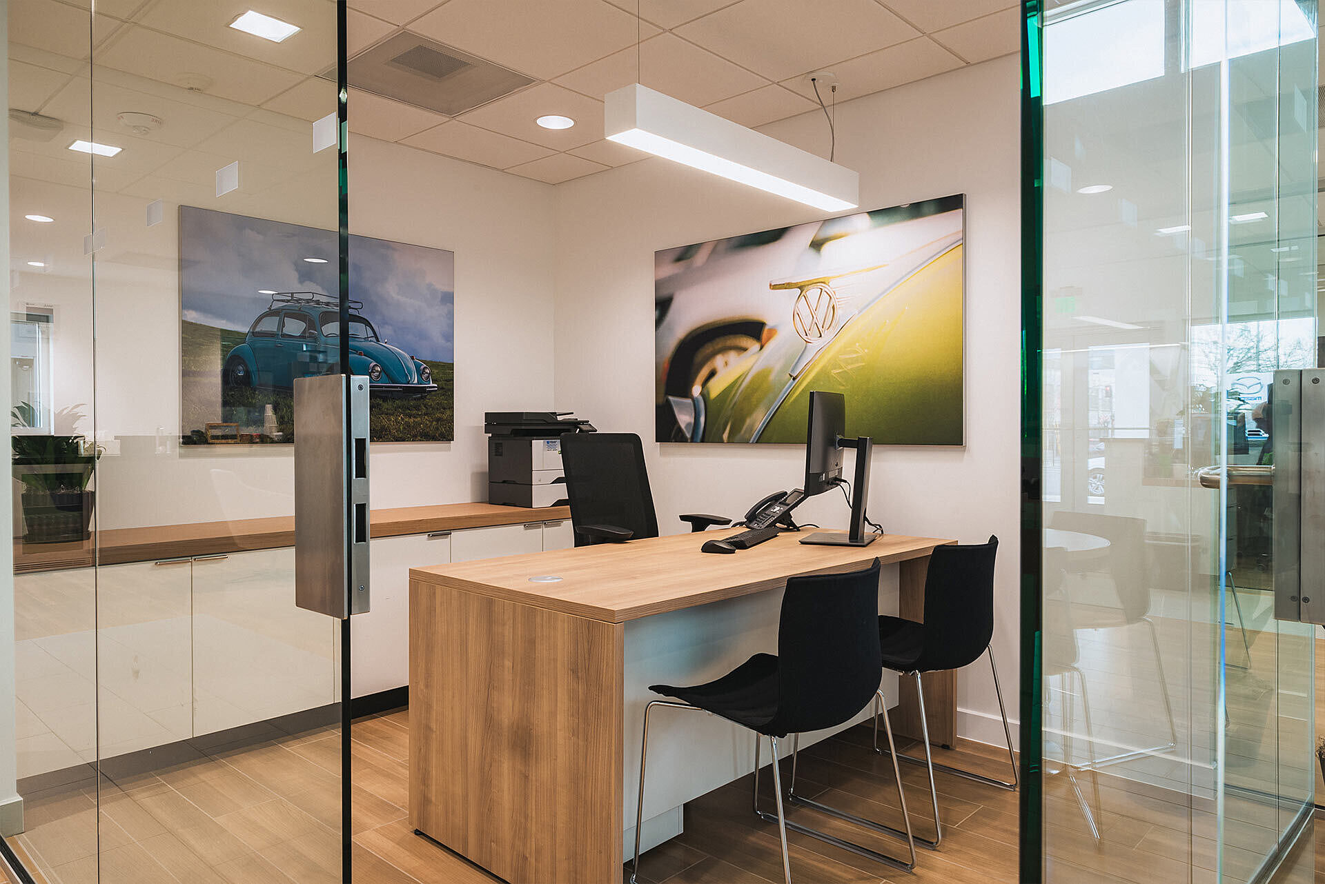 The University VW sales center renovation brings Volkswagen of America’s lighthouse project to fruition: a facility specifically designed to sell its growing fleet of all-electric vehicles. Originally built in the early 1970s and renovated in 2000, the existing University VW showroom was stripped down to its frame and foundation and rebuilt to meet Electrical Vehicle Standards.