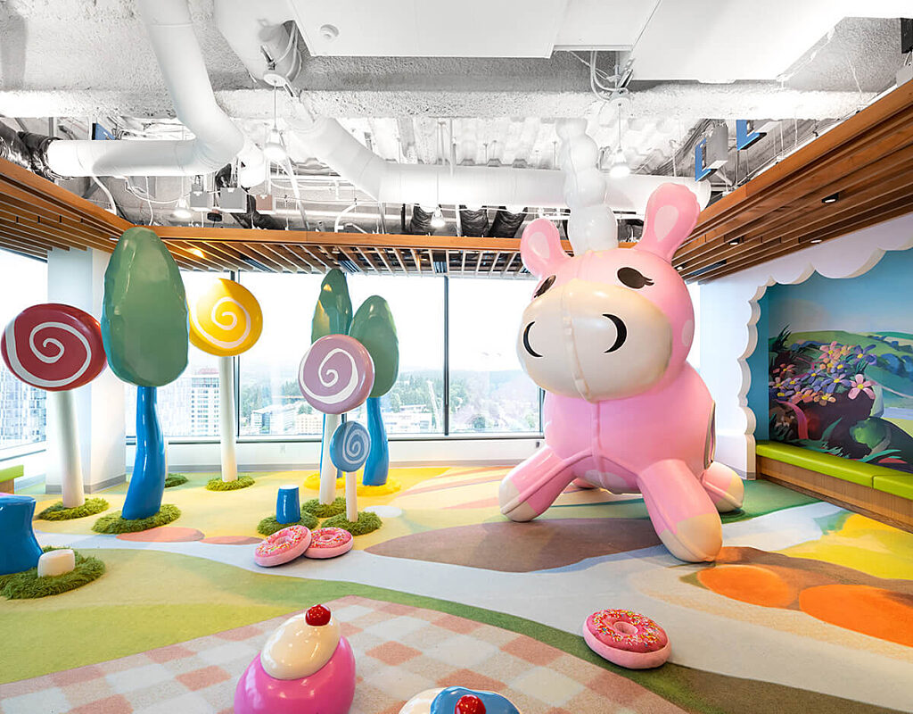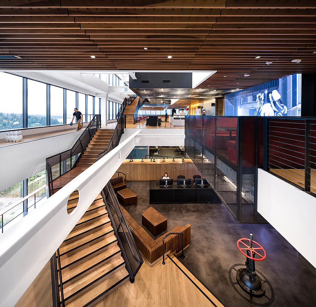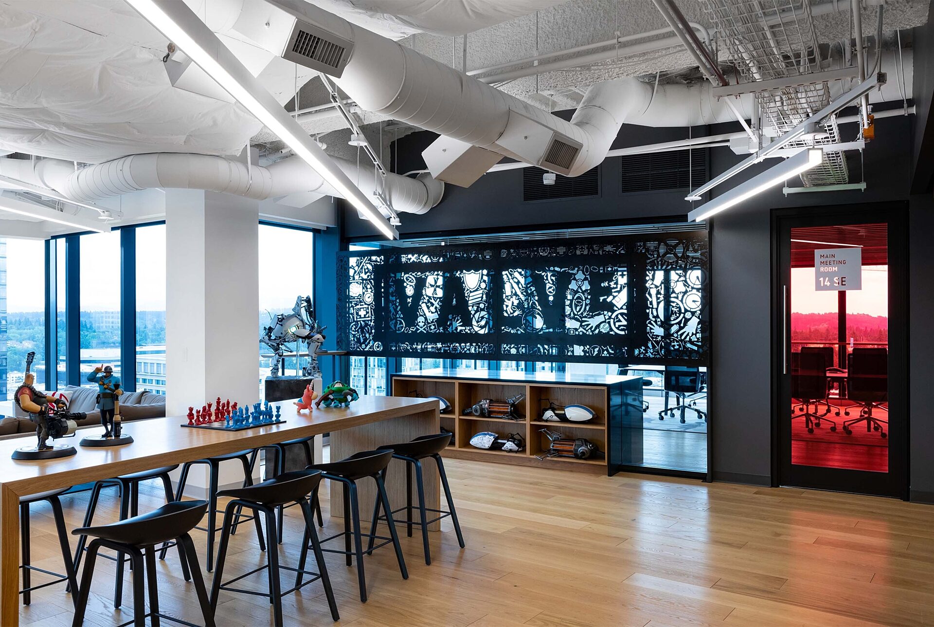 Valveās new corporate headquarters occupy seven floors in the Lincoln Square Expansion south tower and provide staff members with an environment that supports a healthy work-life balance. The build-out includes hardware labs, conference rooms, classrooms, audio editing suites, and a large cafeteria with additional kitchenettes on each floor. Unique amenities include a gym, yoga studio, massage suite, and barbershop.