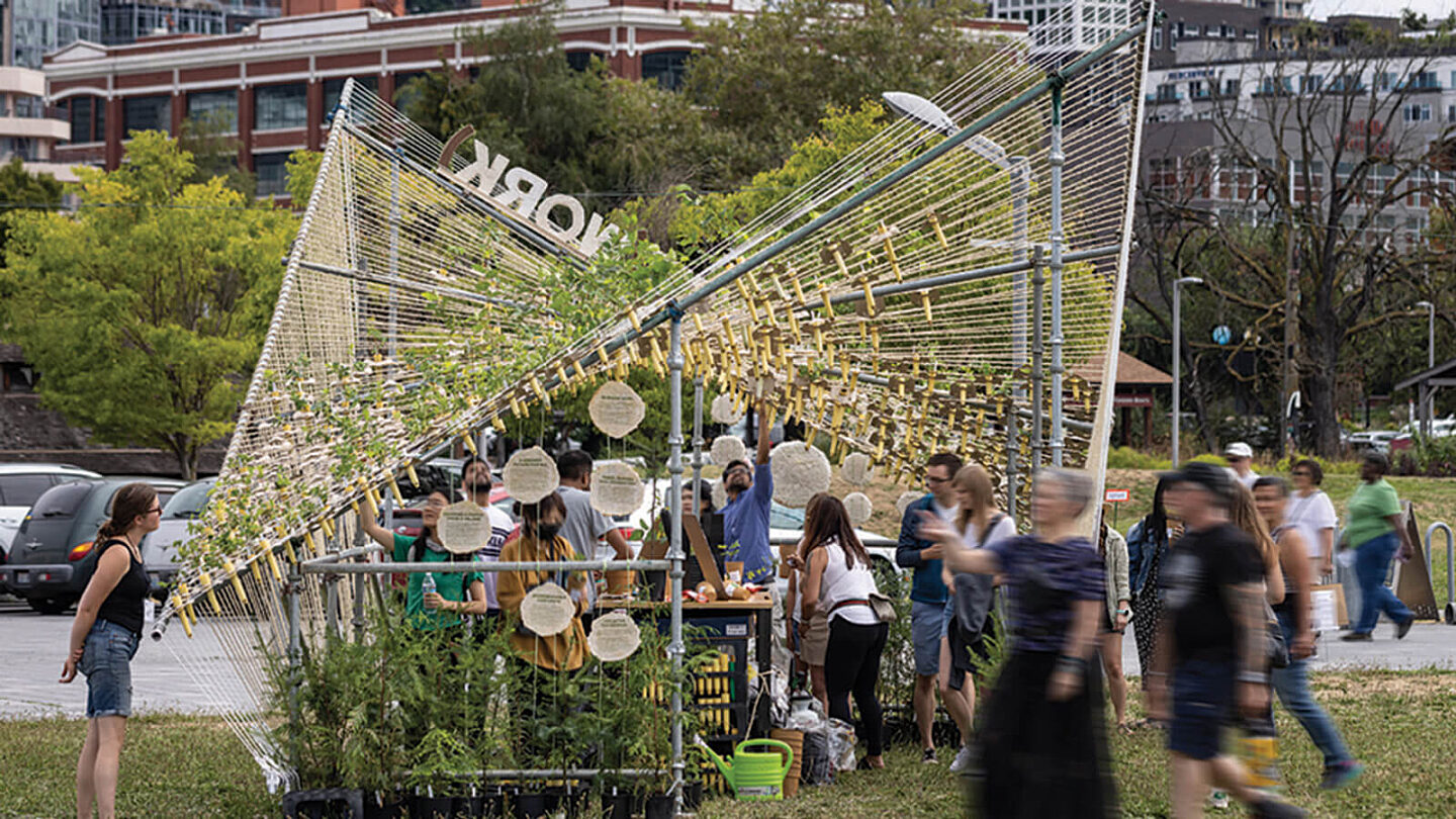The SDF Forest Net(work) installation , design and constructed by NBBJ, Berger Partnership, and GLY volunteers, wins two 2023 SEGD Awards.